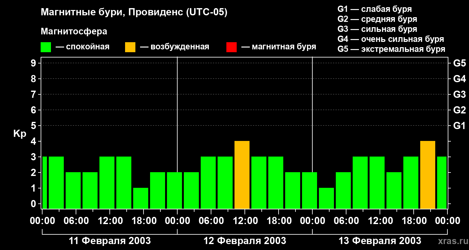 Магнитные бури в Провиденсе — 13 февраля 2003 года