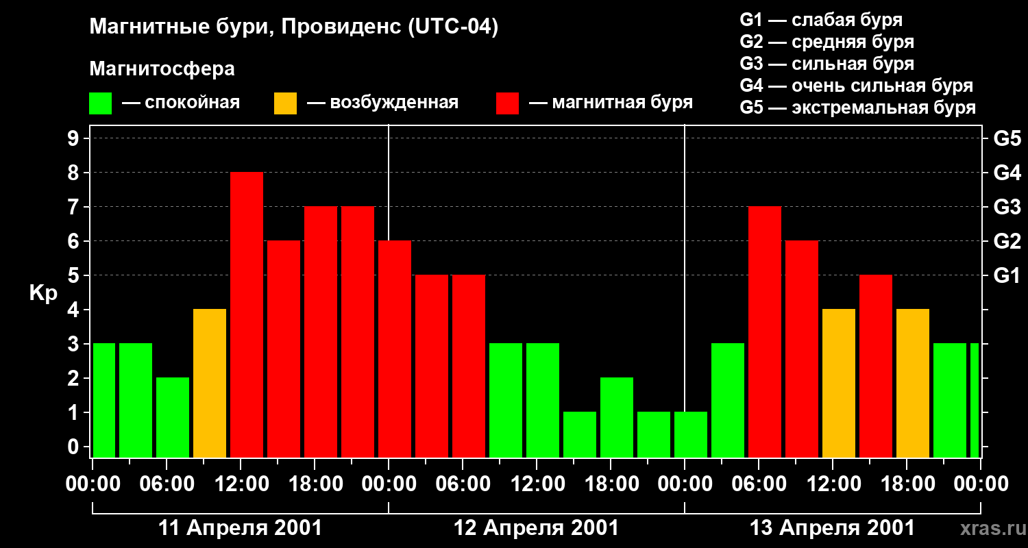 Магнитные бури в Провиденсе — 13 апреля 2001 года