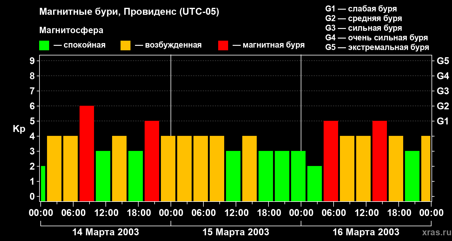 Магнитные бури в Провиденсе — 16 марта 2003 года