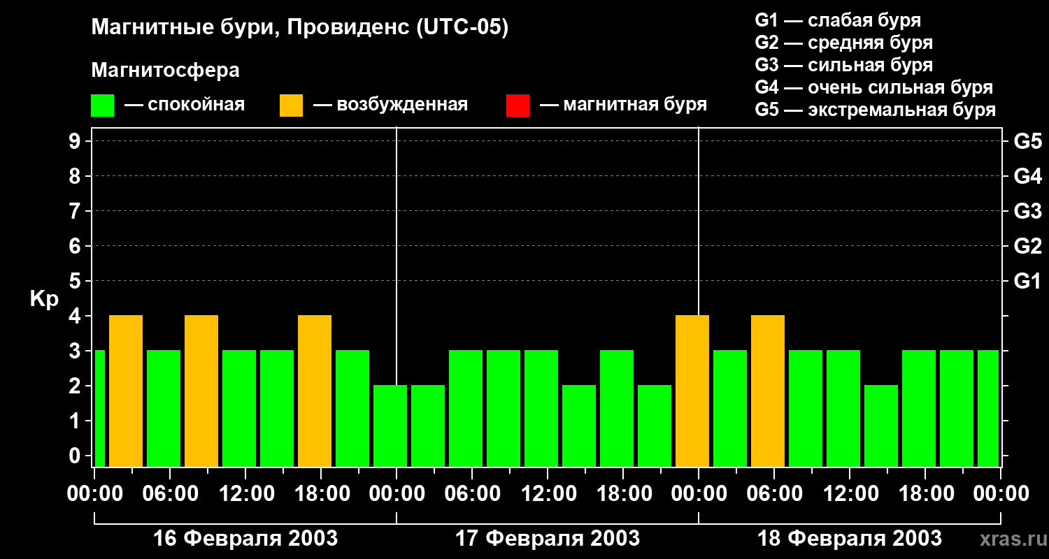 Магнитные бури в Провиденсе — 18 февраля 2003 года