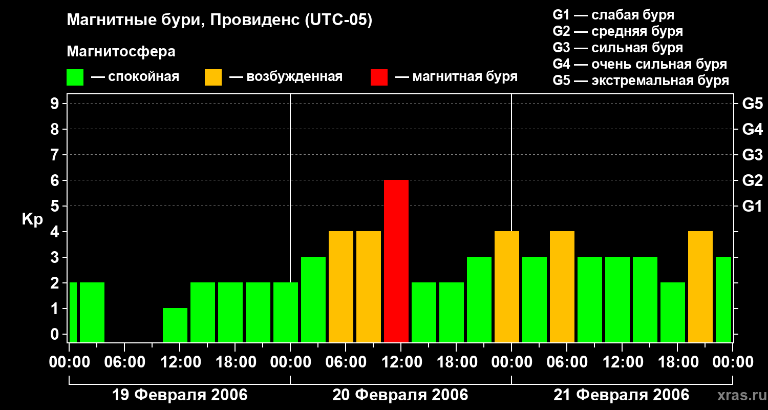 Магнитные бури в Провиденсе — 21 февраля 2006 года