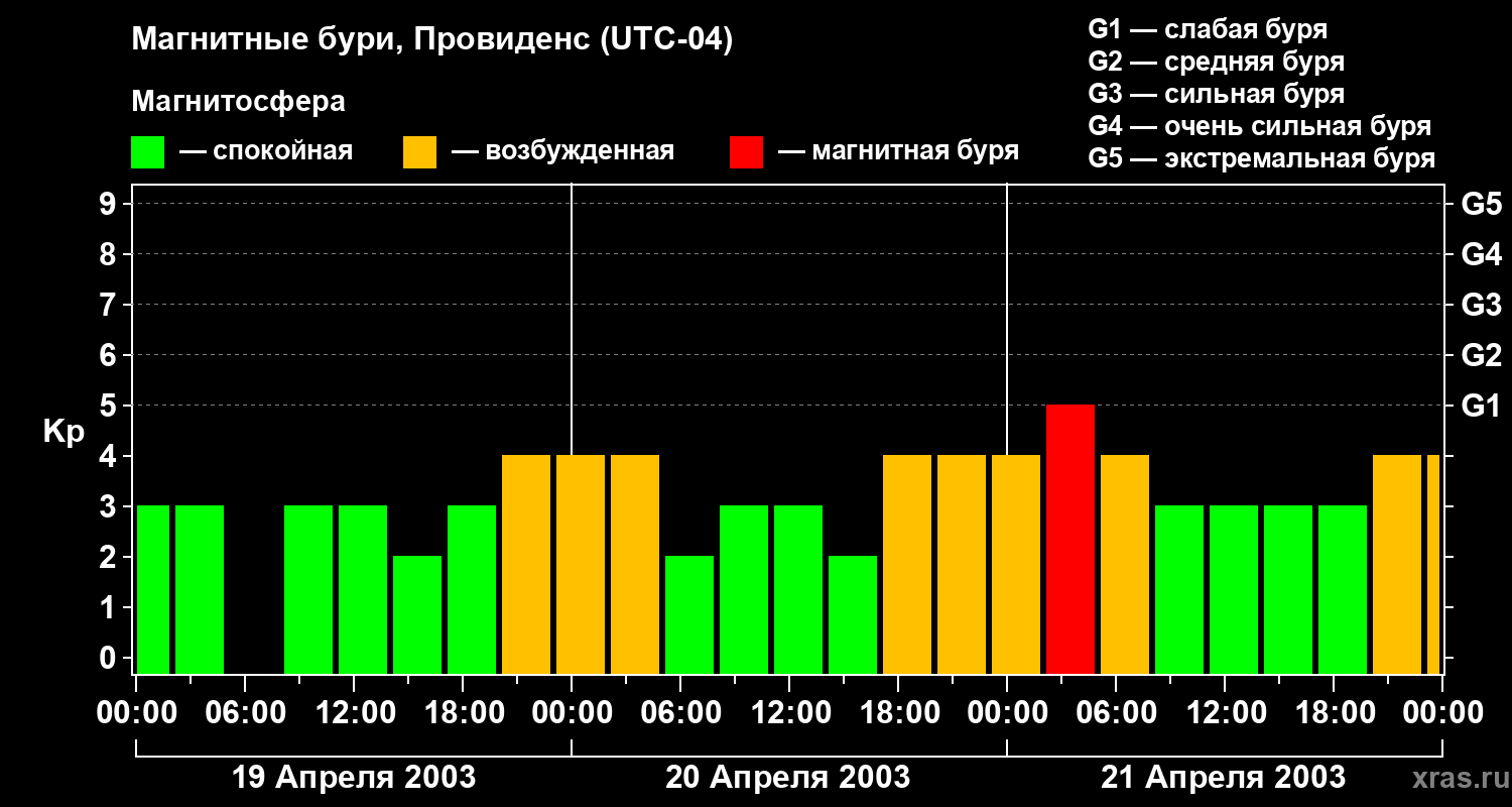 Магнитные бури в Провиденсе — 21 апреля 2003 года