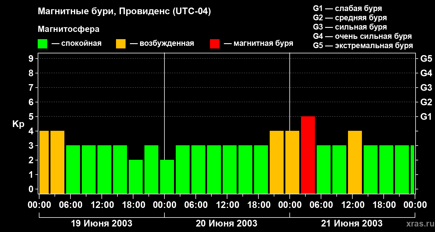 Магнитные бури в Провиденсе — 21 июня 2003 года