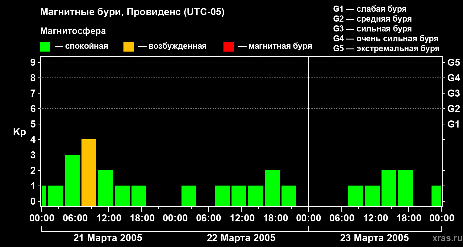 Магнитные бури в Провиденсе — 23 марта 2005 года