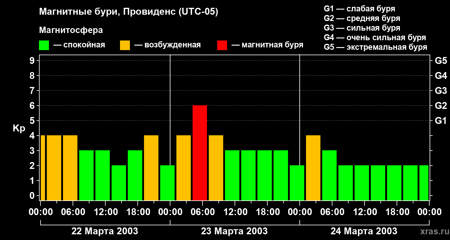Магнитные бури в Провиденсе — 24 марта 2003 года