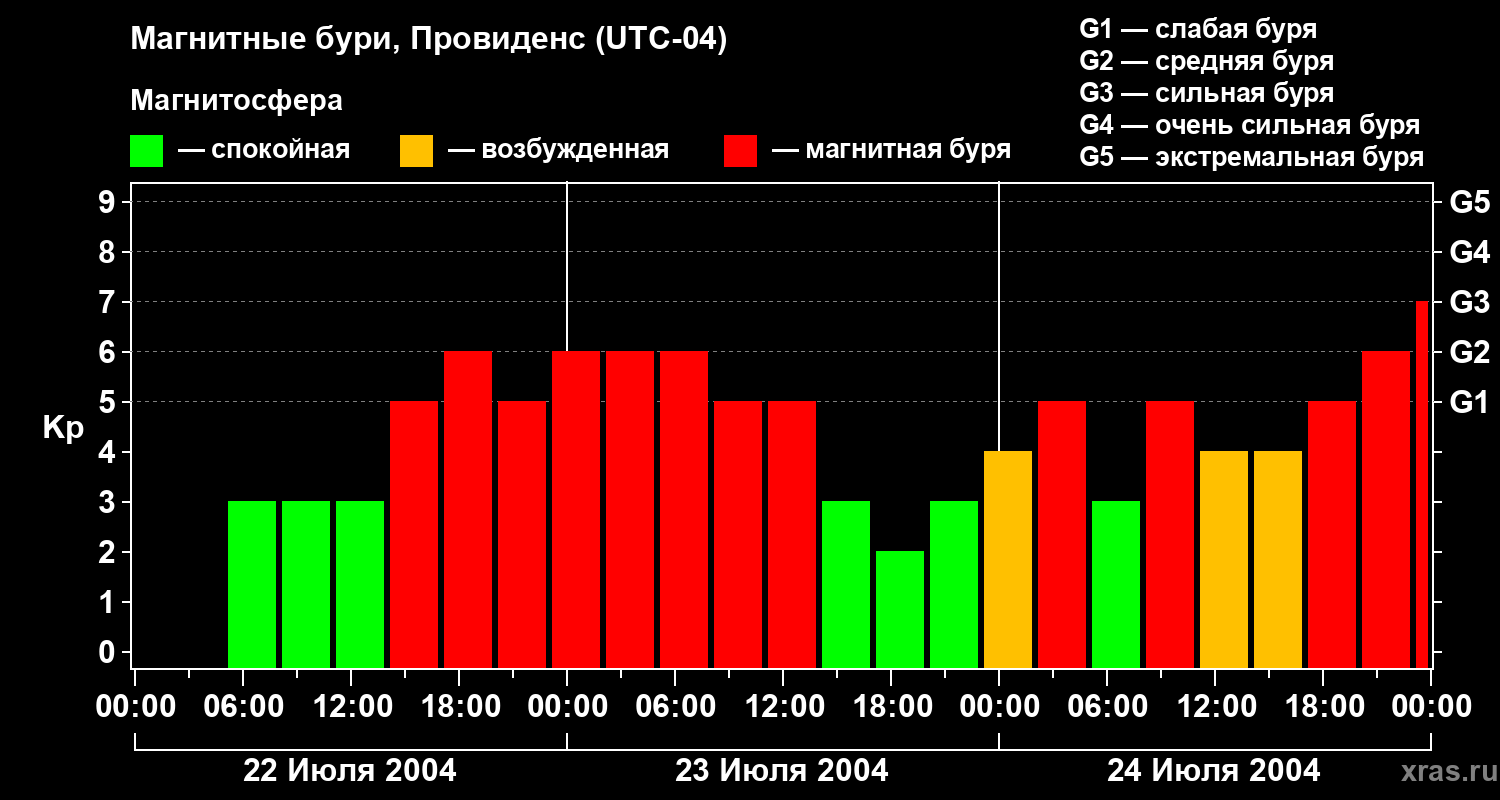 Магнитные бури в Провиденсе — 24 июля 2004 года