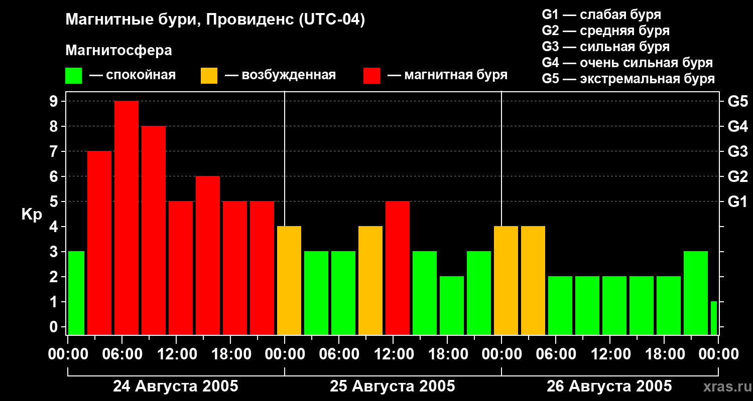 Магнитные бури в Провиденсе — 26 августа 2005 года