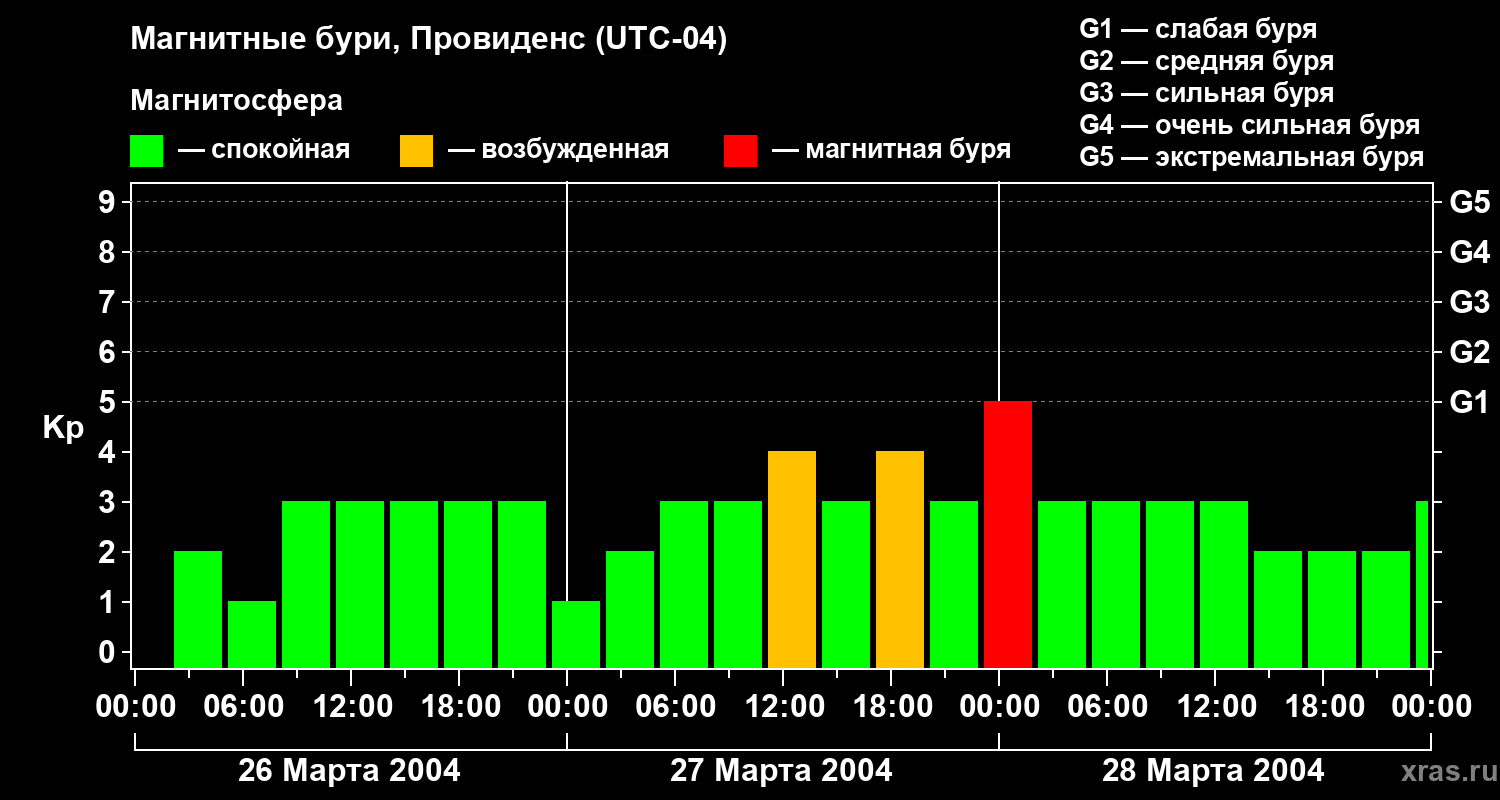 Магнитные бури в Провиденсе — 28 марта 2004 года