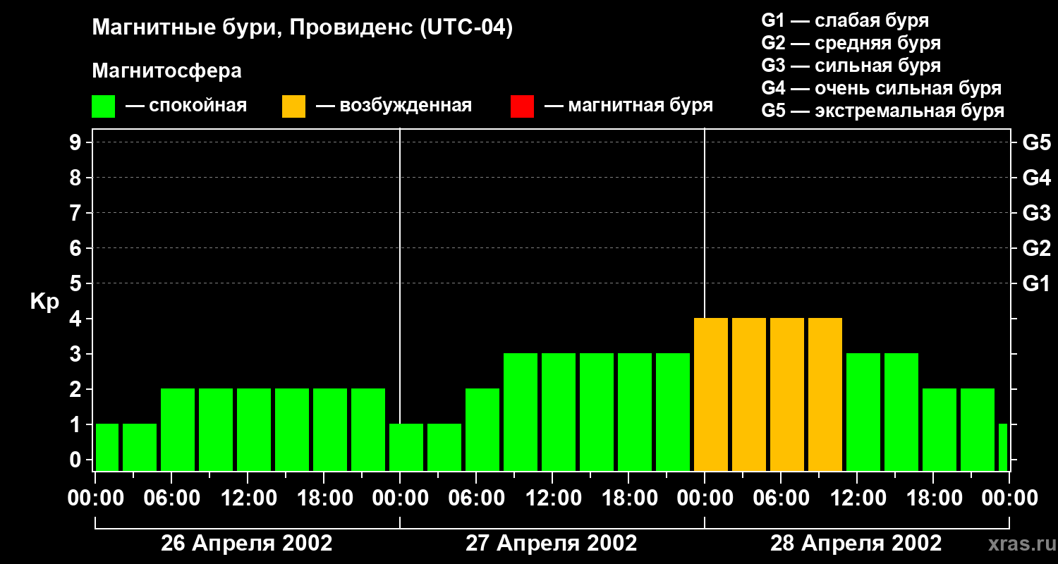 Магнитные бури в Провиденсе — 28 апреля 2002 года