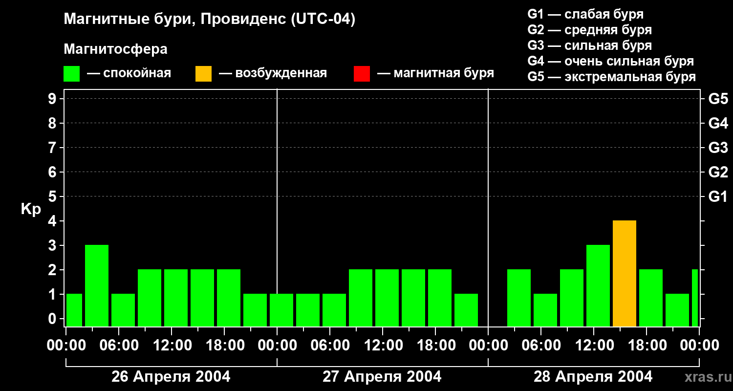 Магнитные бури в Провиденсе — 28 апреля 2004 года