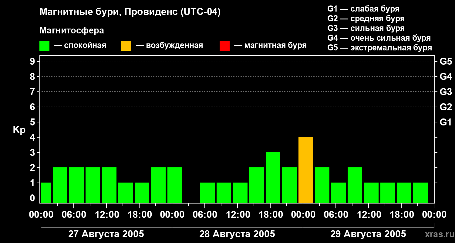 Магнитные бури в Провиденсе — 29 августа 2005 года