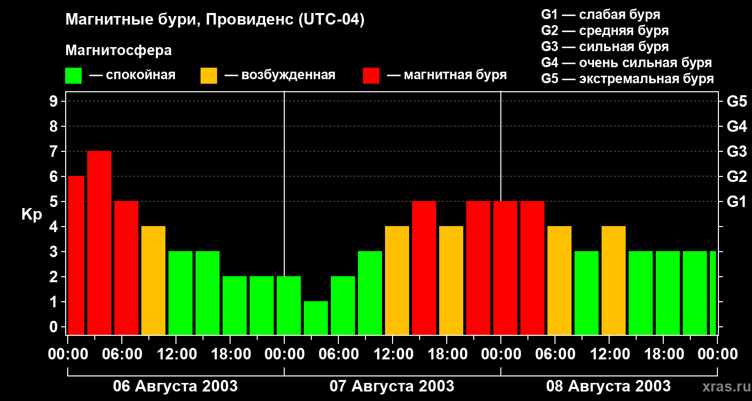 Магнитные бури в Провиденсе — 8 августа 2003 года
