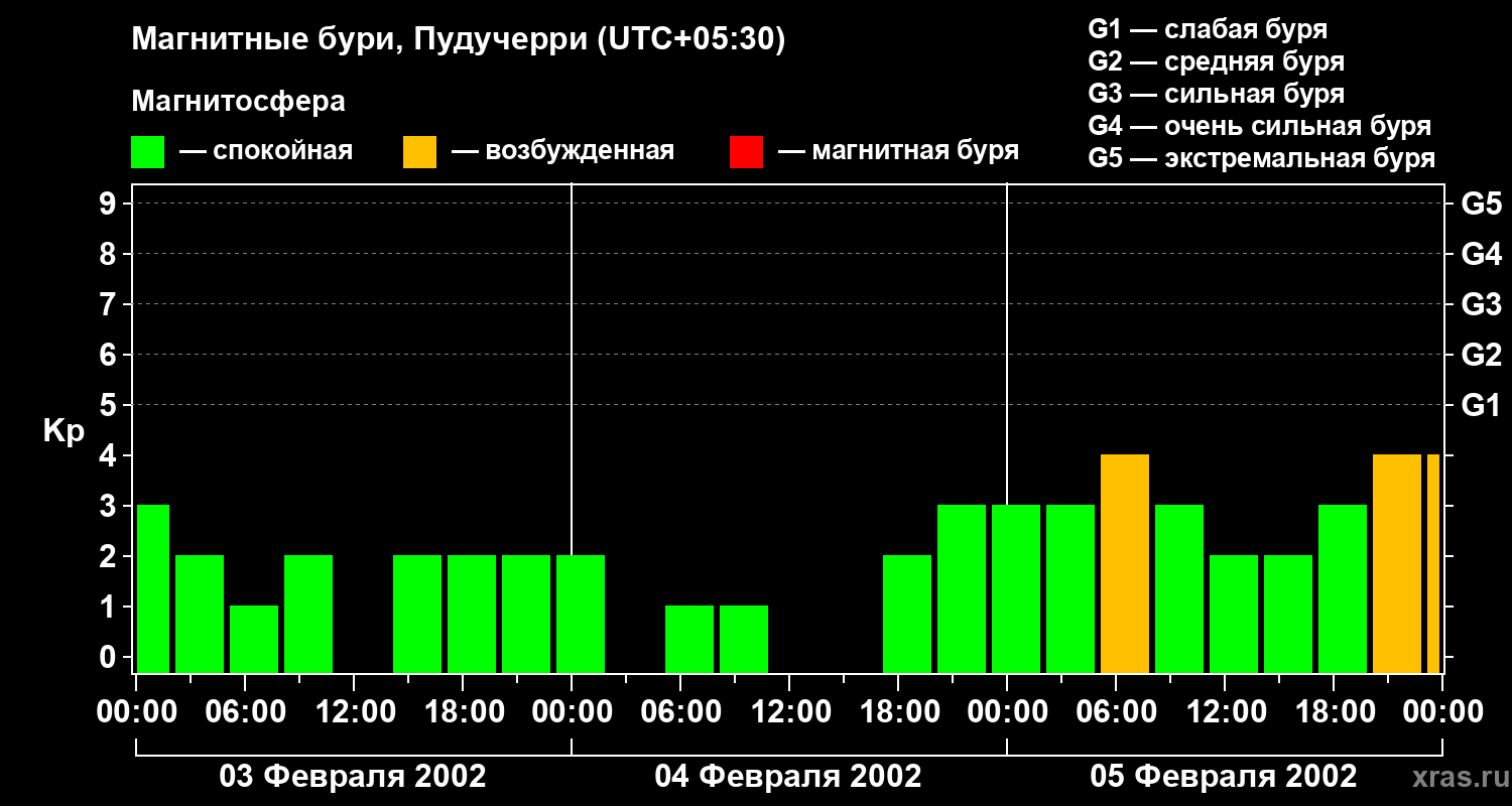 Магнитные бури Пудучерри 5 февраля 2002 года