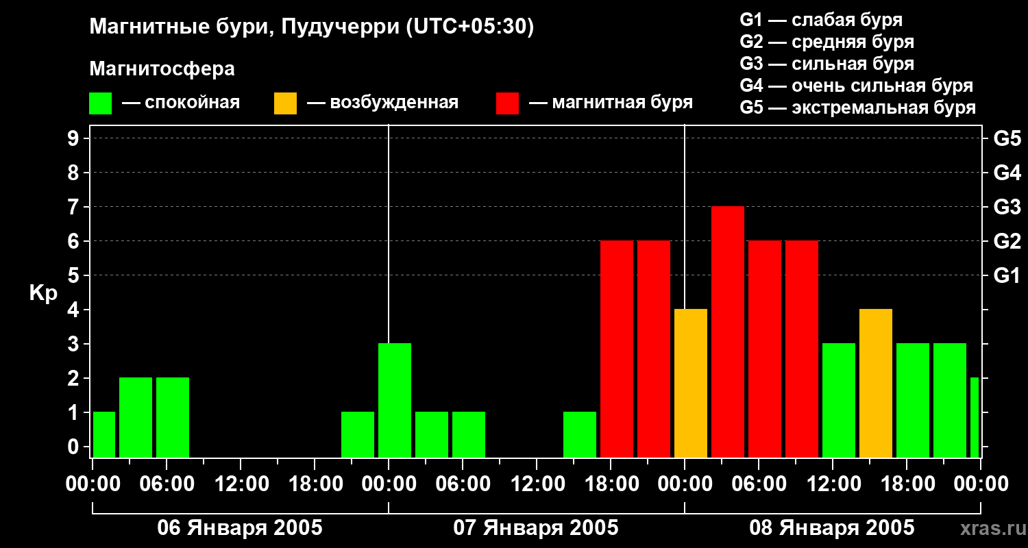 Магнитные бури Пудучерри 8 января 2005 года