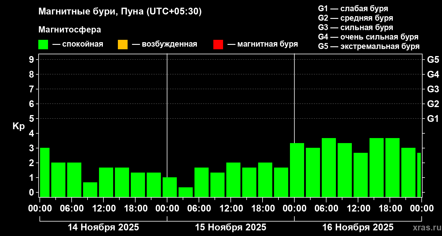Магнитные бури в Пуне — 16 ноября 2025 года