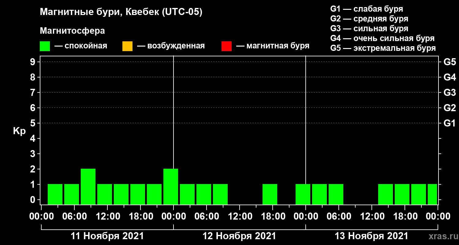 Магнитные бури в Квебеке — 13 ноября 2021 года