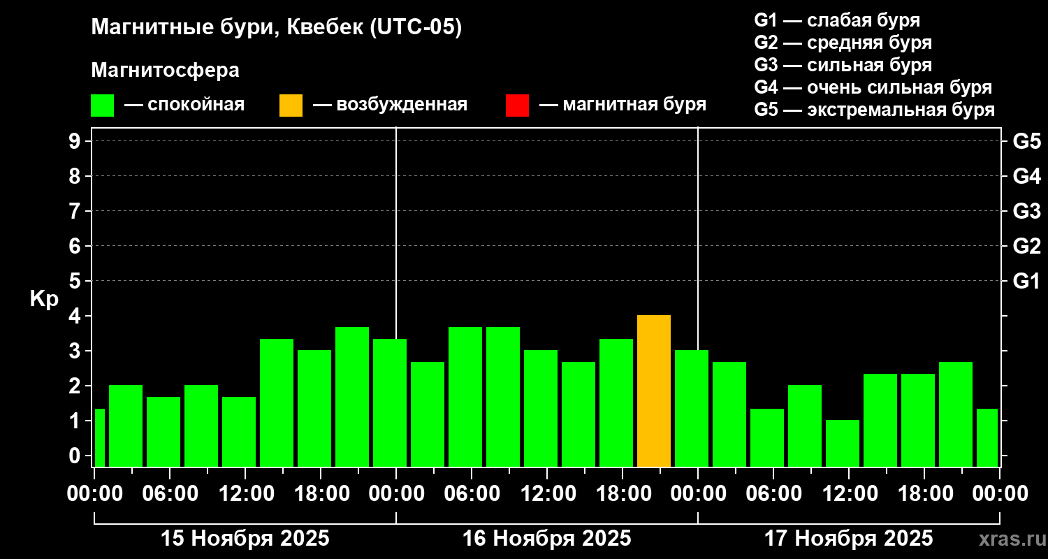 Магнитные бури в Квебеке — 17 ноября 2025 года