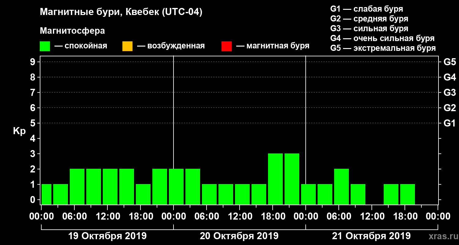 Магнитные бури в Квебеке — 21 октября 2019 года