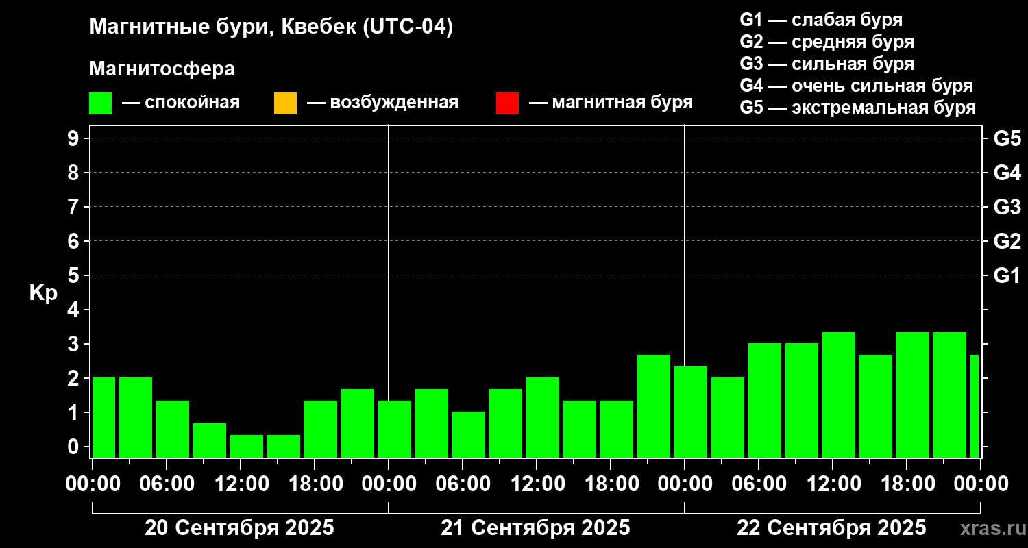 Магнитные бури в Квебеке — 22 сентября 2025 года