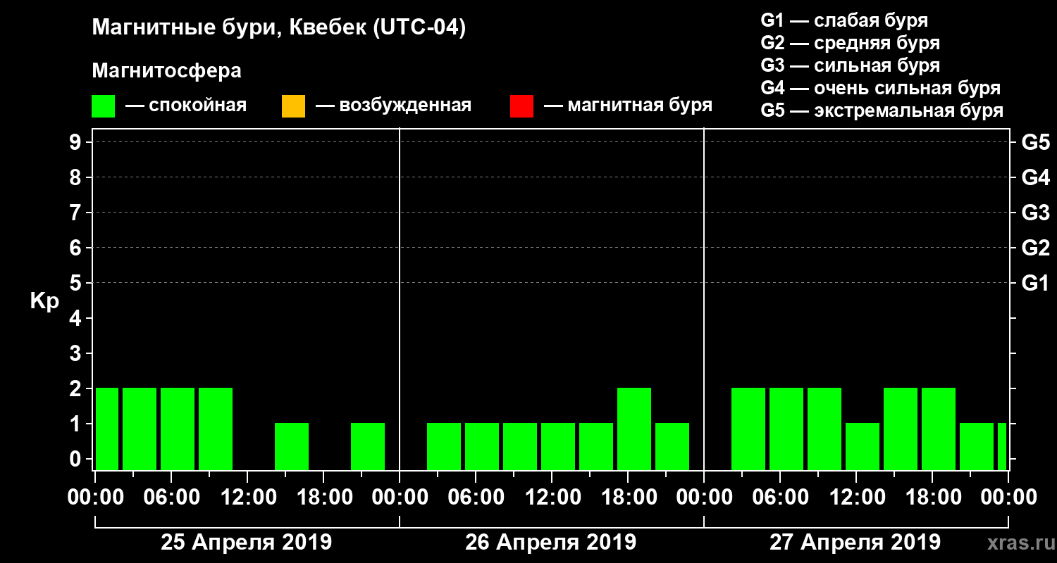 Магнитные бури в Квебеке — 27 апреля 2019 года