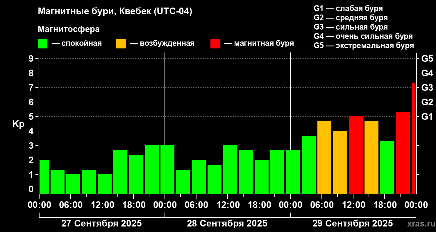 Магнитные бури в Квебеке — 29 сентября 2025 года