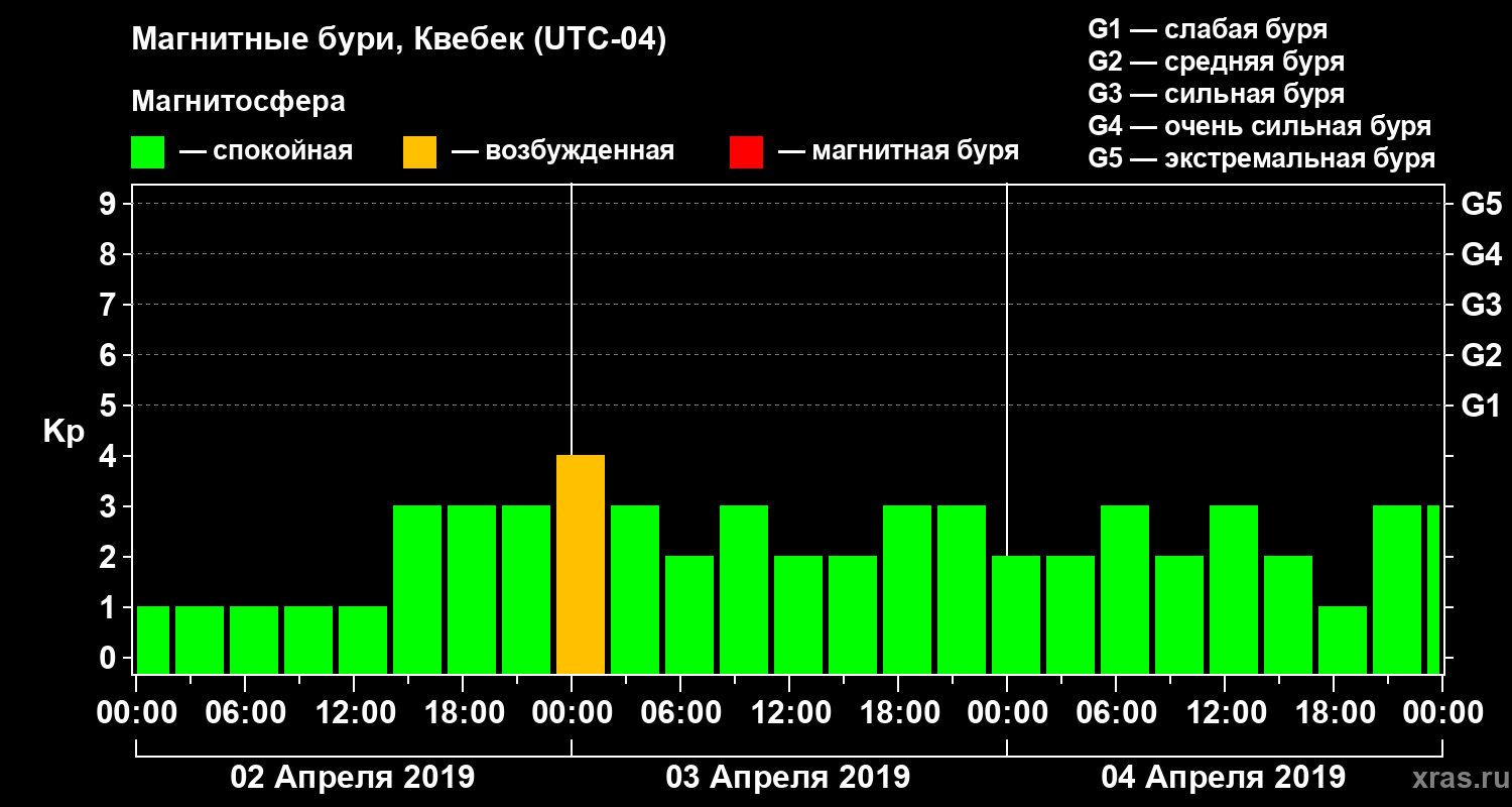 Магнитные бури в Квебеке — 4 апреля 2019 года