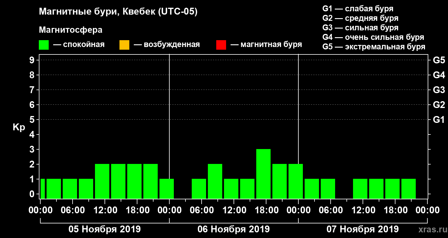 Магнитные бури в Квебеке — 7 ноября 2019 года