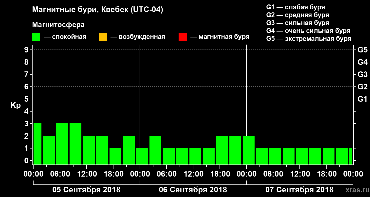 Магнитные бури в Квебеке 7 сентября 2018 года