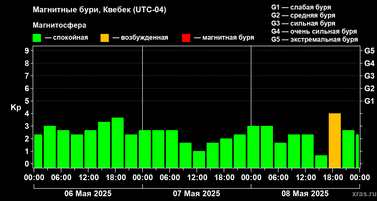 Магнитные бури в Квебеке — 8 мая 2025 года