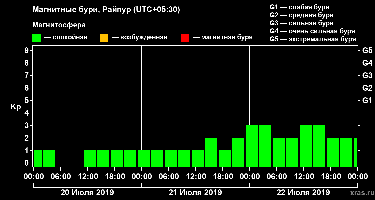Магнитные бури в Райпуре — 22 июля 2019 года