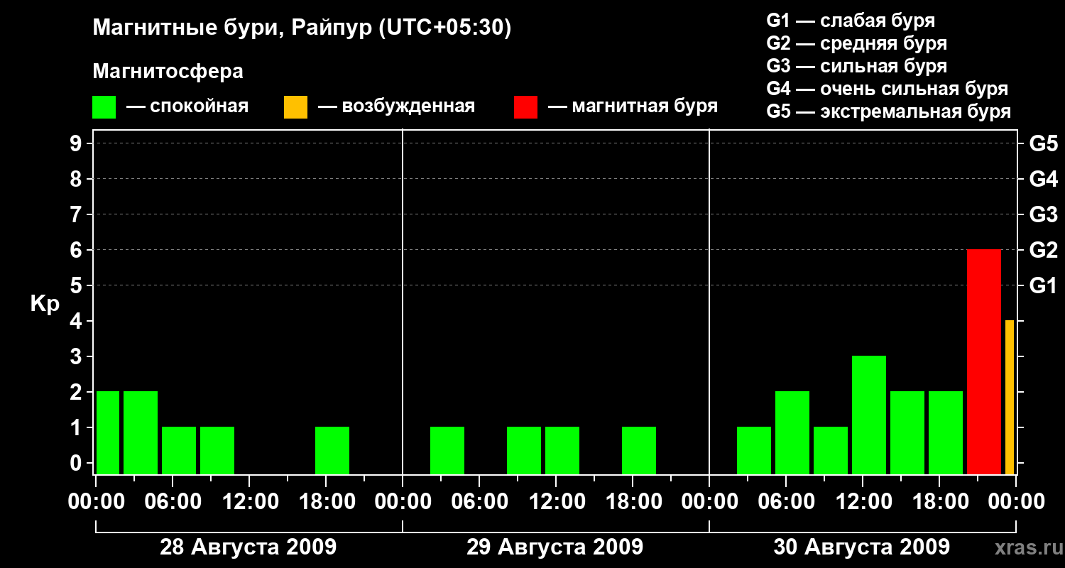 Магнитные бури в Райпуре — 30 августа 2009 года