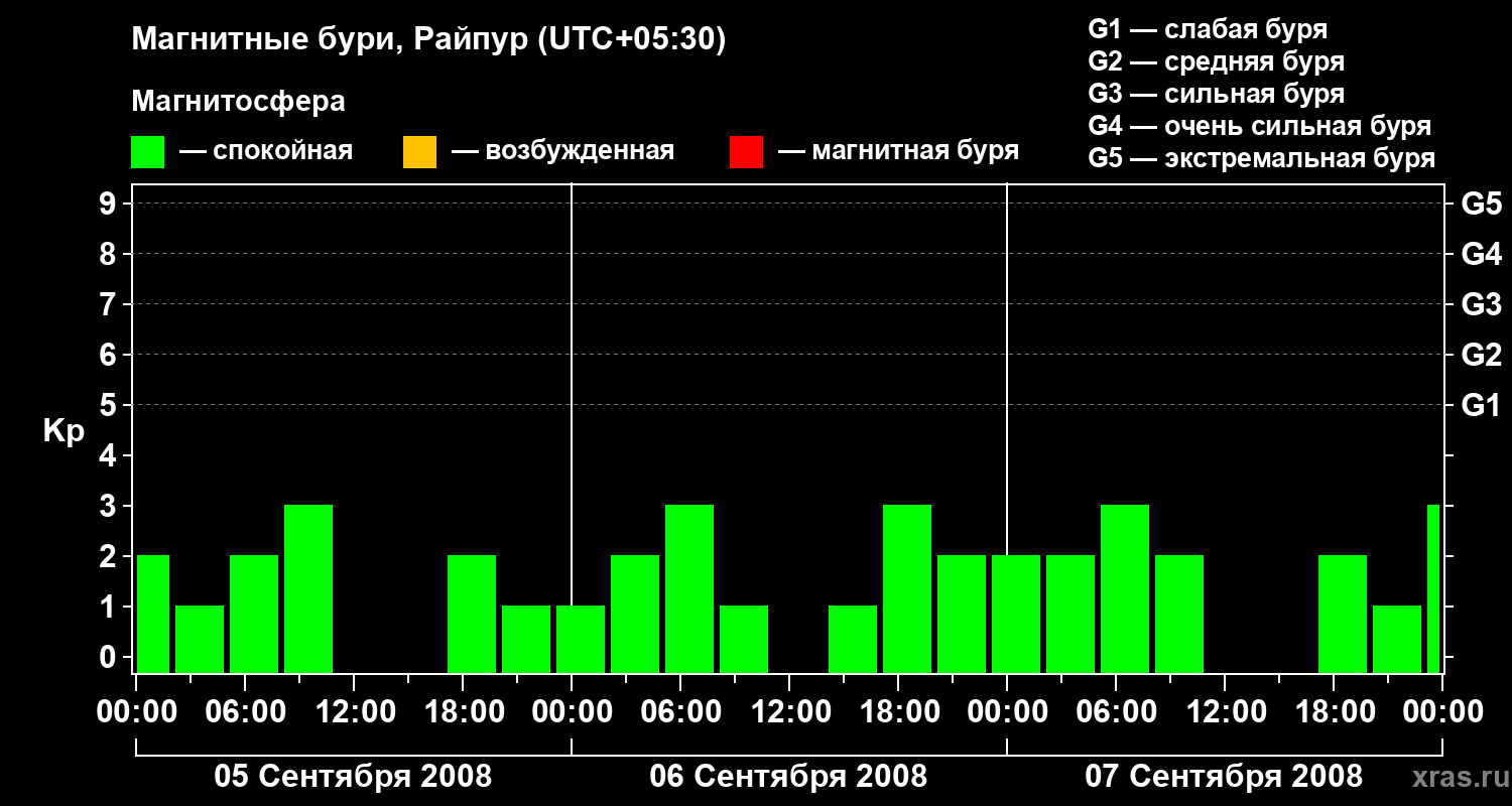 Магнитные бури в Райпуре 7 сентября 2008 года