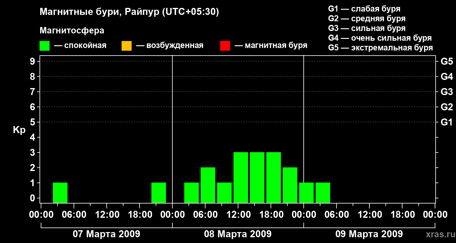 Магнитные бури в Райпуре — 9 марта 2009 года