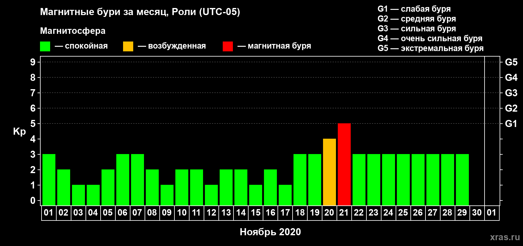 Список магнитных бурь в ноябре 2020 года