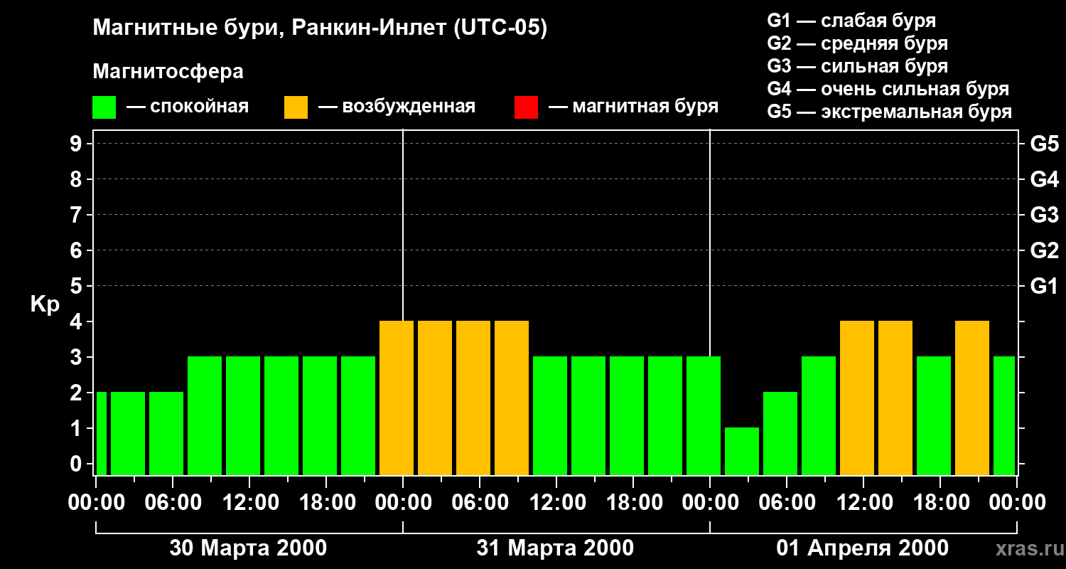 Магнитные бури в Ранкин-Инлете — 1 апреля 2000 года