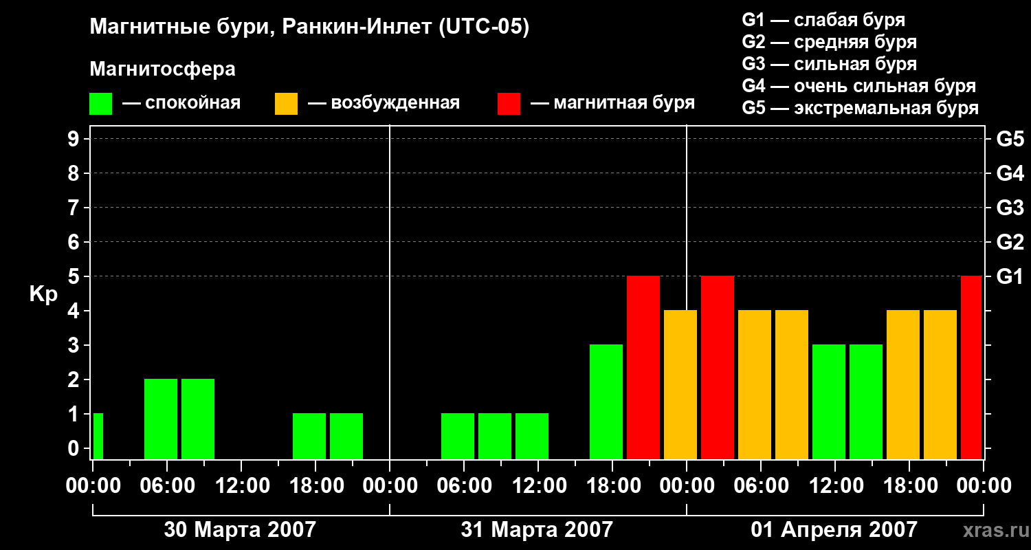 Магнитные бури в Ранкин-Инлете 1 апреля 2007 года