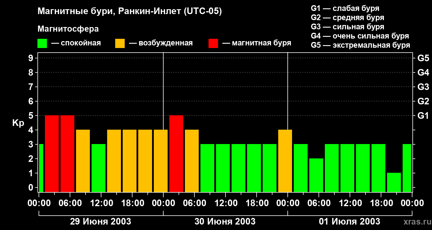 Магнитные бури в Ранкин-Инлете — 1 июля 2003 года