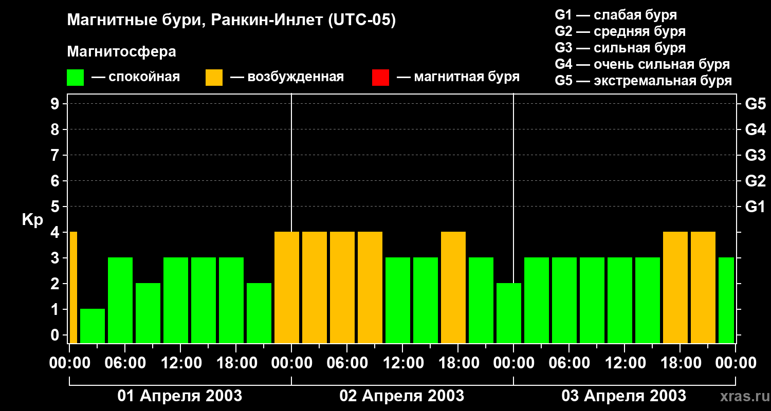 Магнитные бури в Ранкин-Инлете — 3 апреля 2003 года
