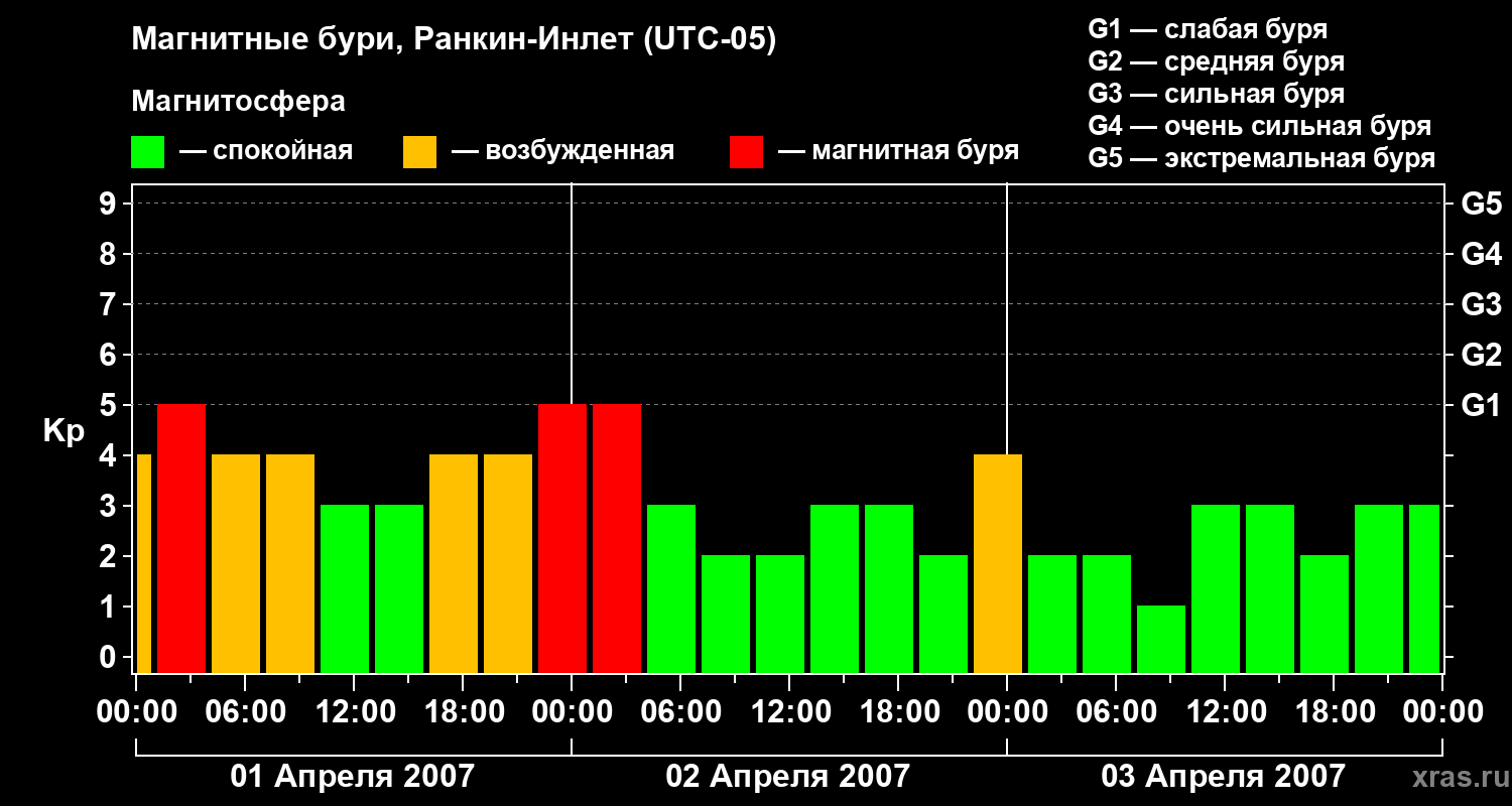 Магнитные бури в Ранкин-Инлете 3 апреля 2007 года