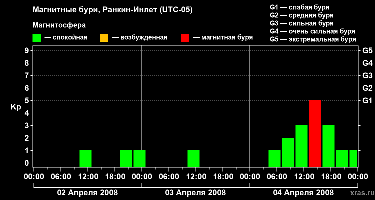 Магнитные бури в Ранкин-Инлете в апреле 2008 года