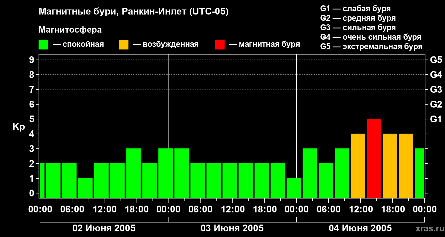 Магнитные бури в Ранкин-Инлете 4 июня 2005 года