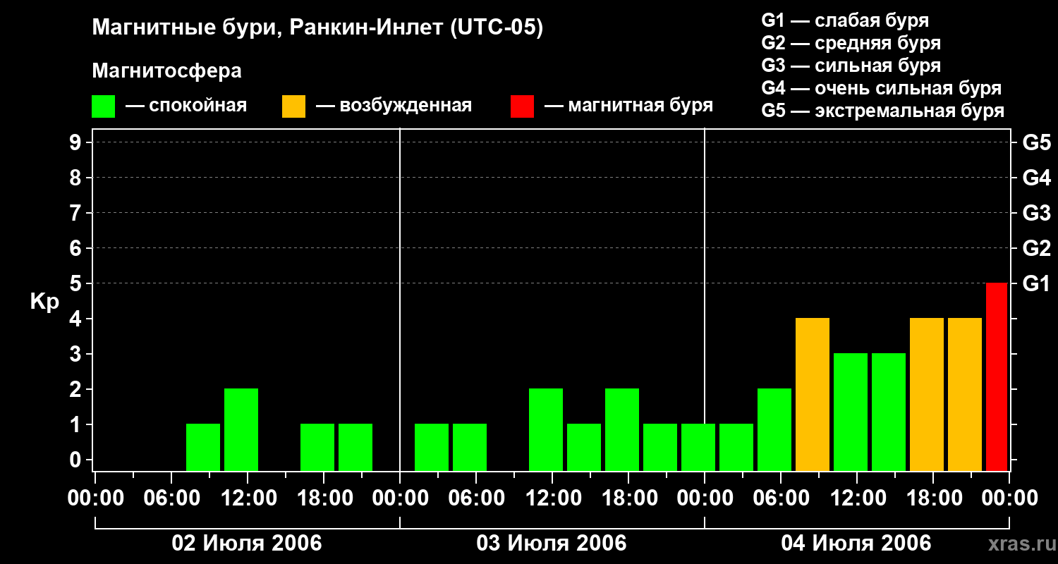 Магнитные бури в Ранкин-Инлете 4 июля 2006 года