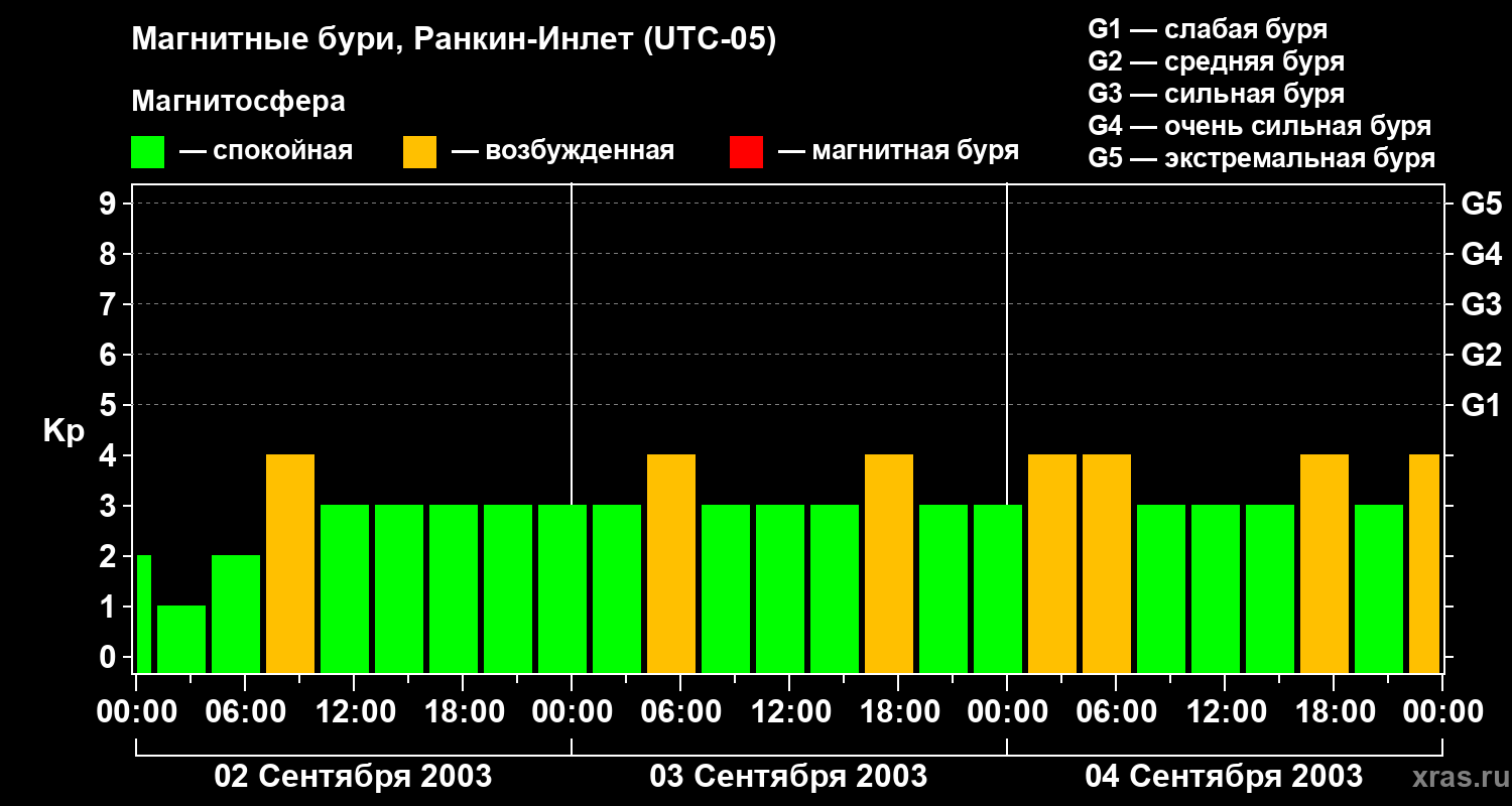 Магнитные бури в Ранкин-Инлете 4 сентября 2003 года