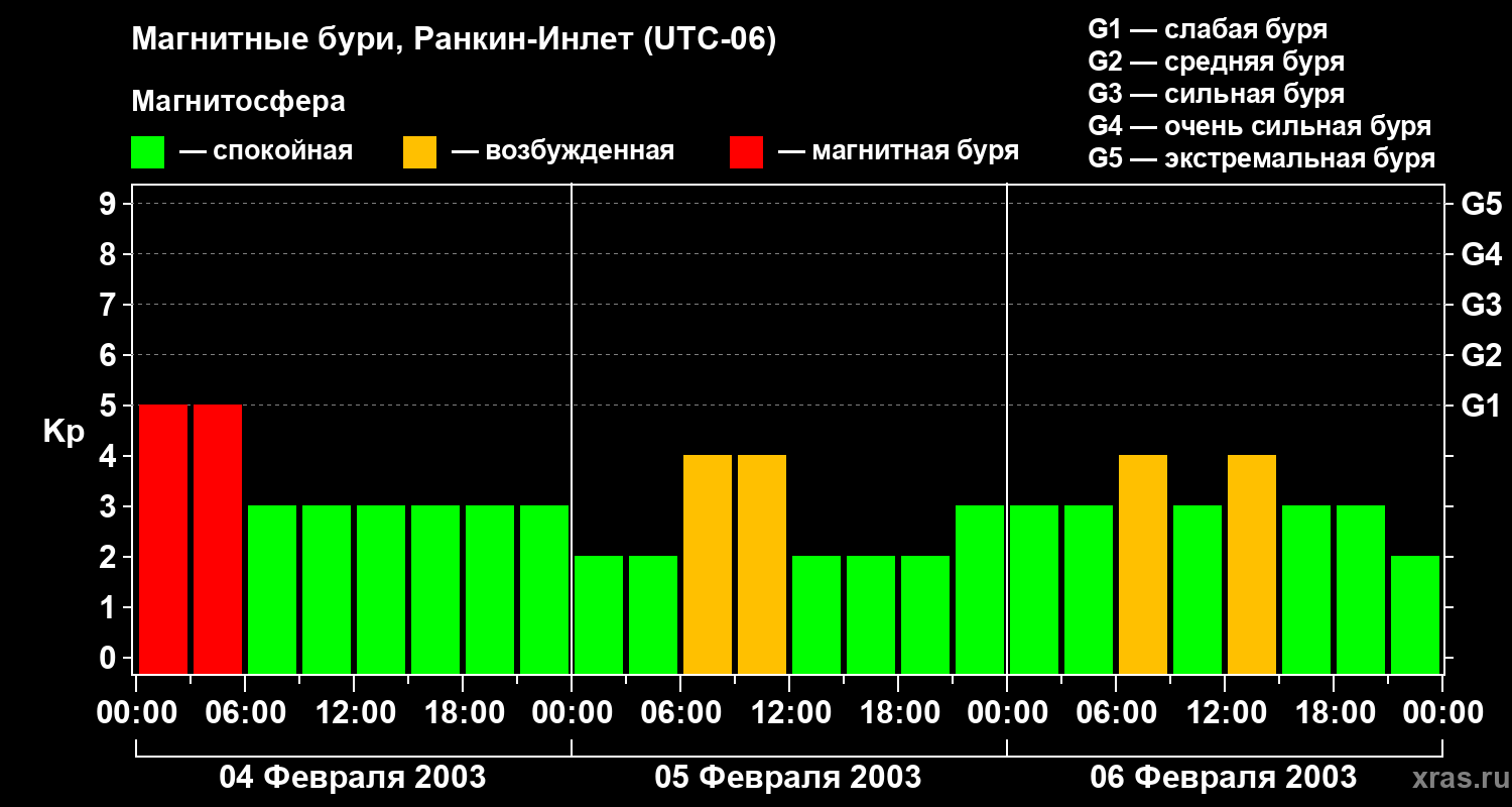 Магнитные бури в Ранкин-Инлете 6 февраля 2003 года