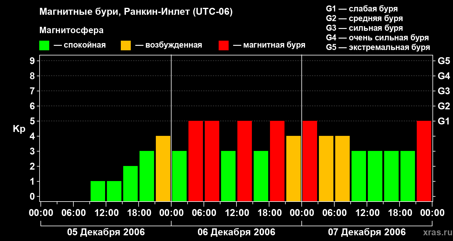 Магнитные бури в Ранкин-Инлете в декабре 2006 года