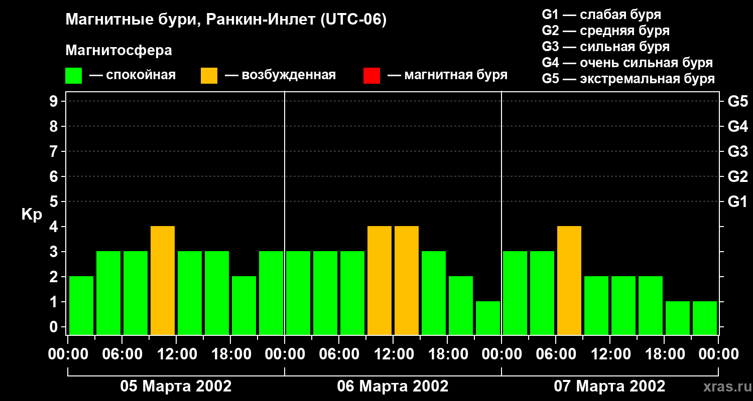 Магнитные бури в Ранкин-Инлете в марте 2002 года