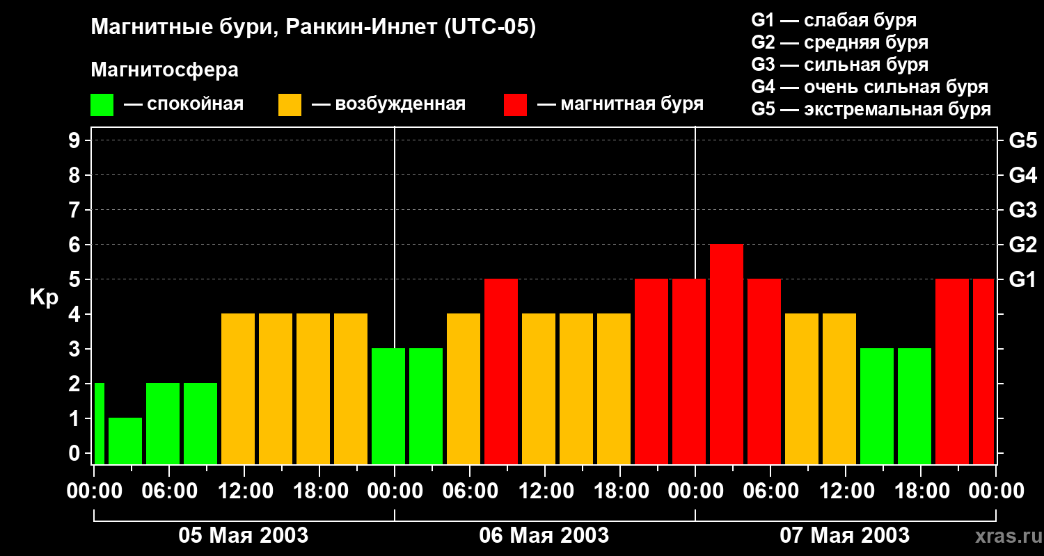 Магнитные бури в Ранкин-Инлете в мае 2003 года