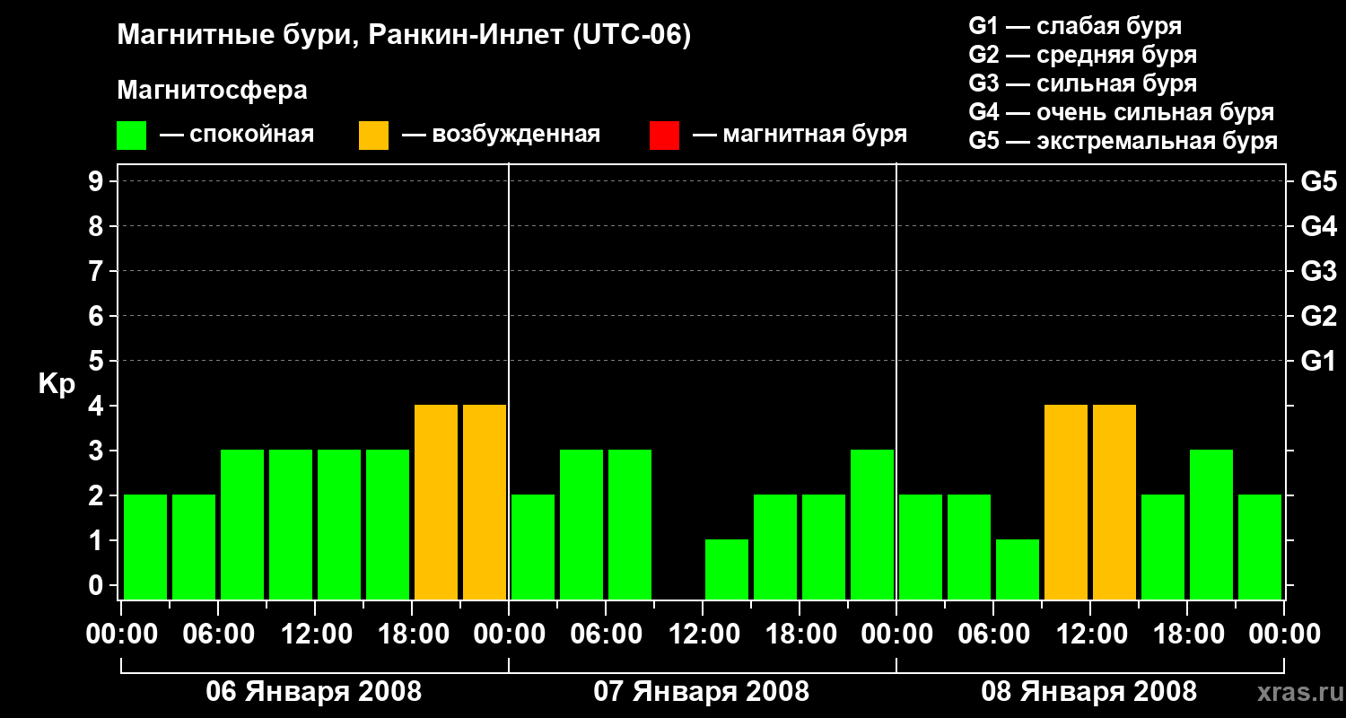 Магнитные бури в Ранкин-Инлете 8 января 2008 года