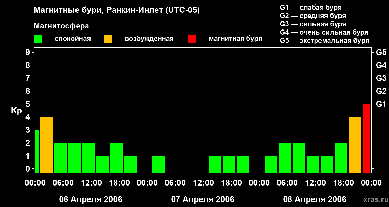 Магнитные бури в Ранкин-Инлете в апреле 2006 года