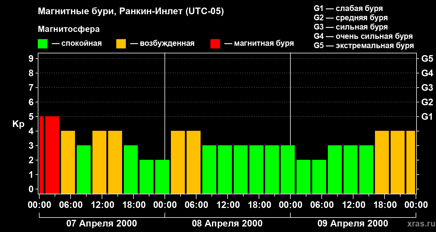 Магнитные бури в Ранкин-Инлете 9 апреля 2000 года
